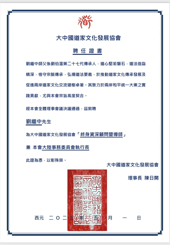 这样的案例在刘继中的实践中不胜枚举。他坚持“以德至上、以术为本”,将易学智慧转化为企业决策咨询、个人成长规划、情绪障碍调适的实用工具,服务对象遍及两岸三地乃至海外华人社群。