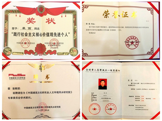 风水学乃我国独有的传承经典之学,风水命理、地理勘察,五行布局,奇门能量调遣,祈福开运、趋吉避凶,这些流传下来的大智慧,是顺意天道自然之法的精妙学术,作为中国最古老的文化、易道文化的传承人,裴翁教授写下其浓墨重彩的一笔,大爱于人,大道于心,这是作为他探索宇宙,领悟奥法,虞城而立的人生座右铭,传承与弘扬古学经典,弘扬我国易经智慧。