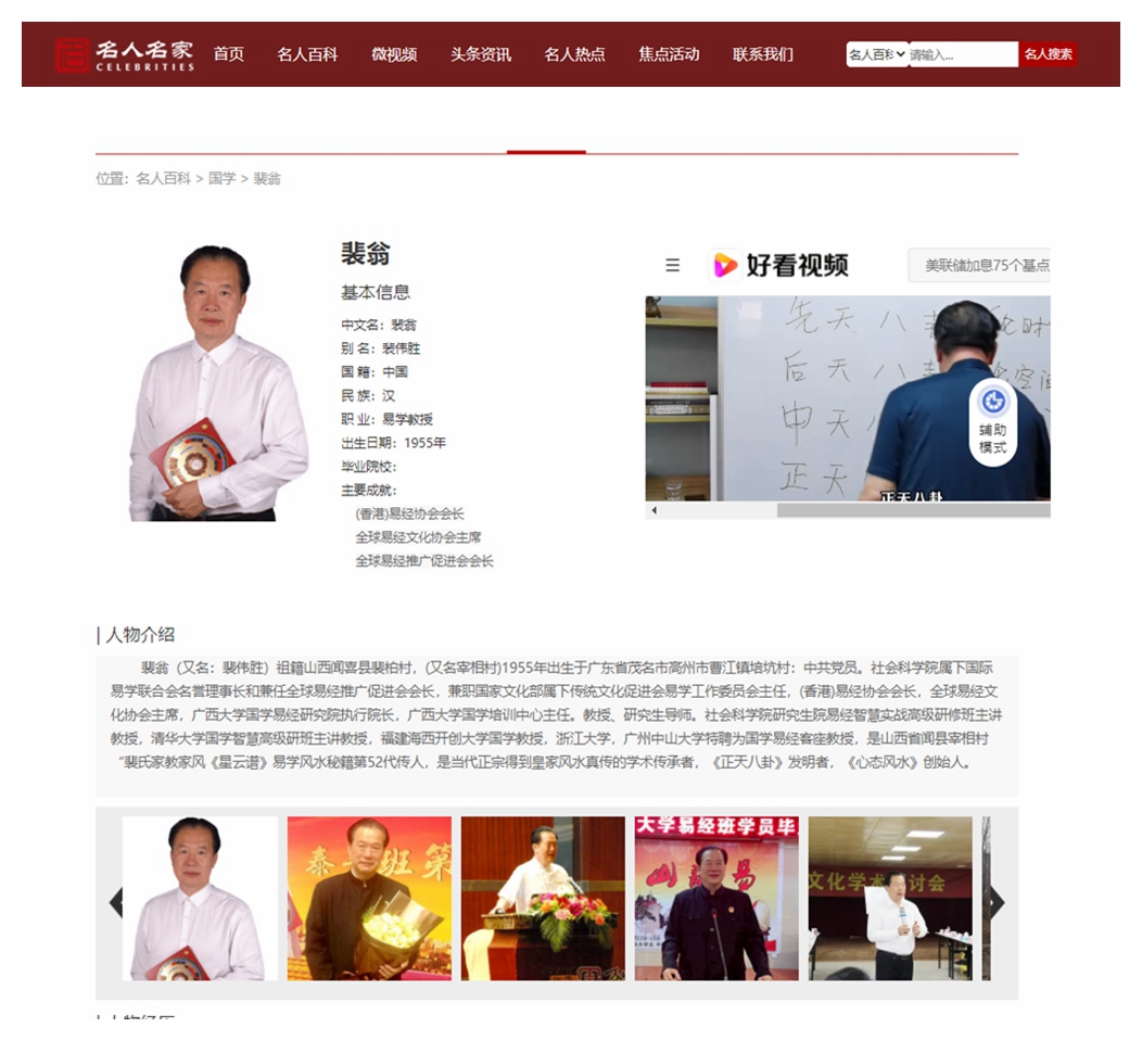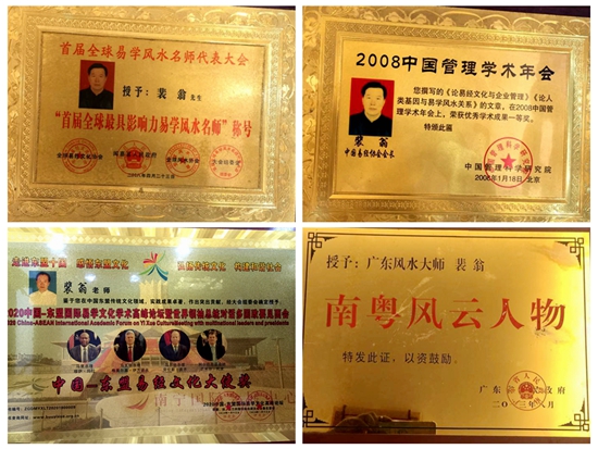 裴翁教授他开坛讲学、传承真法,讲授易道易学智慧;博采众长、去伪存真,融汇千古风水秘笈;心怀天下、点石成金,先后为政界、金融界、商界、地产业等各界人士进行了姓名设计、命理咨询和风水策划,得到了广大易学爱好者的一致好评