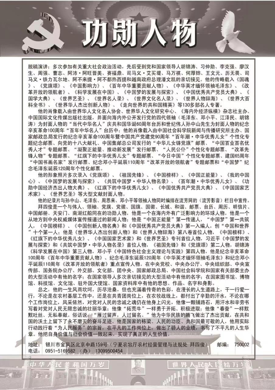 拜四俊入编《中华人民共和国功勋人物大典》一书